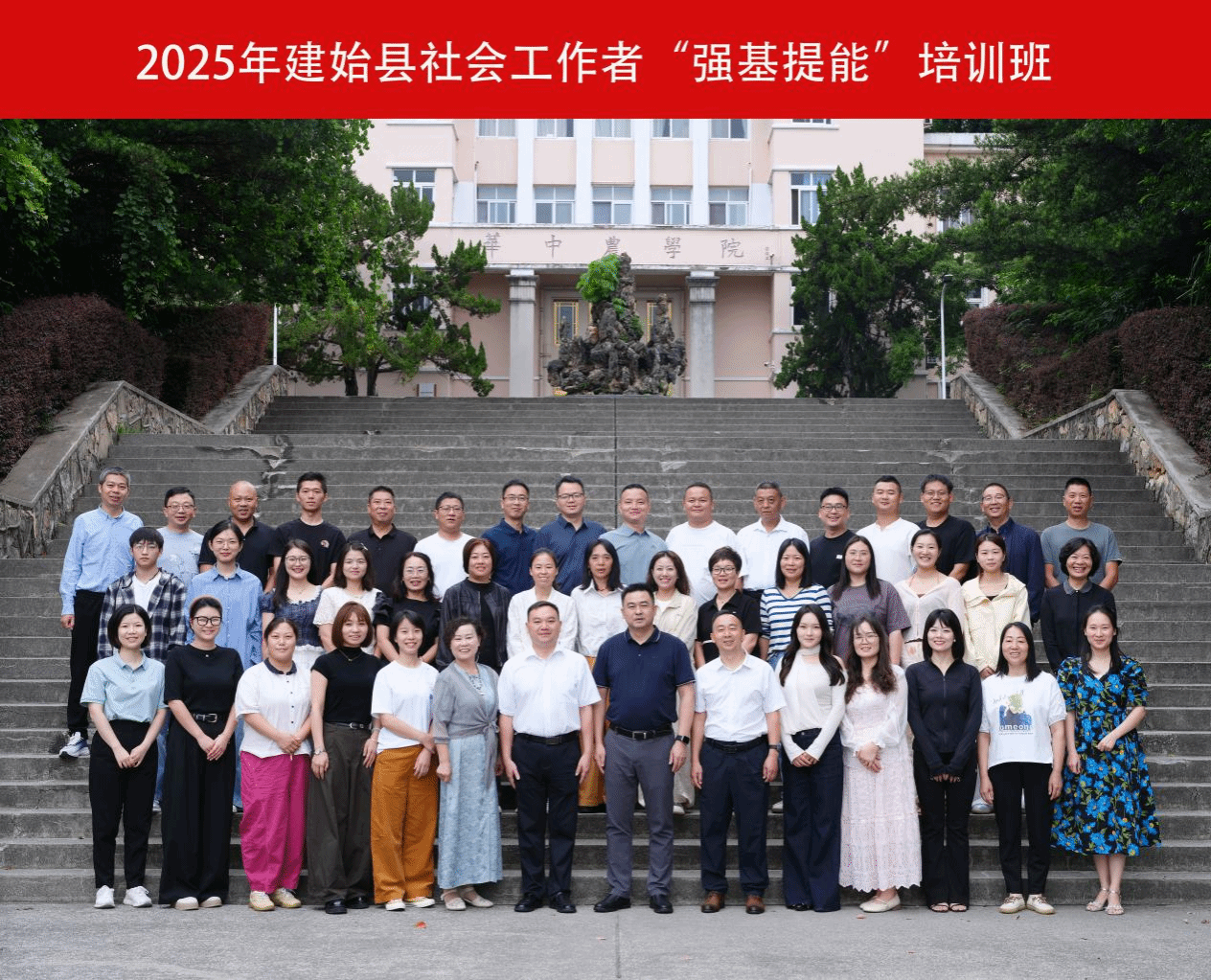 秋光正好,学履不停。9月20日上午,2025年建始县社会工作者“强基提能”培训班”在华中农业大学顺利开班。建始县委社会工作部部长吴天兵、副部长杨天兵,我校教育培训学院副院长兰之祥等出席开班式。来自建始县各乡镇、社区的40名基层社会工作骨干参加本次培训。