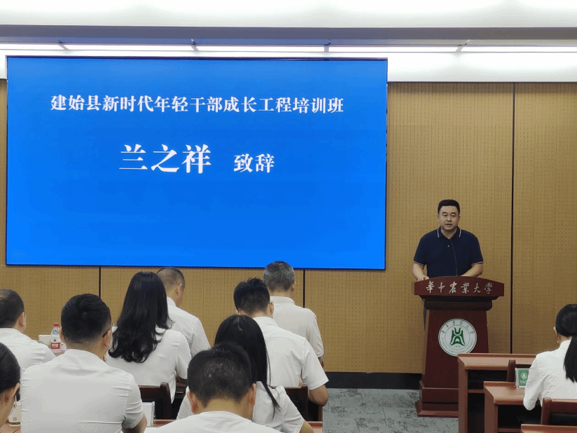 兰之祥在致辞中介绍了学校127年的办学历史。作为教育部直属的全国“双一流”建设高校,自2012年与建始县结对帮扶以来,13年间学校始终以“六个一”帮扶机制为抓手,充分发挥学科、人才、技术等核心优势,深度助力建始县六大特色农业全产业链建设,为当地乡村振兴提供了有力支撑。他谈到,本次培训学校与建始县委组织部、县委党校反复沟通、精准对接,课程体系深度融合理论教学与实践赋能,师资队伍汇聚学校及省委党校的专家学者,教学形式多样。他期望全体学员以“空杯心态”投入学习,紧密结合基层工作实际转化学习成果,在交流研讨中互学互鉴、共同提升。