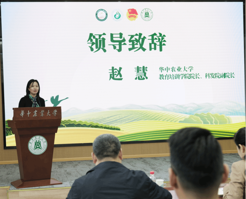 开学典礼在庄重热烈的氛围中拉开帷幕。赵慧首先代表学校致辞,向全体学员表示热烈欢迎,并介绍了我校在服务湖北农业农村发展方面的深厚积淀与使命担当。她指出,农村电商、现代种业和养殖是推动农业现代化的三大支柱,并勉励学员们争做“科技兴农的践行者、产业融合的开拓者、雁阵领航的担当者”,切实把学习成果转化为推动乡村振兴的强大动力。