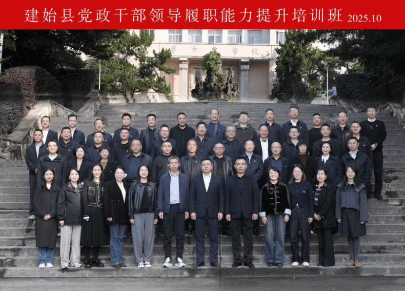 10月31日上午,2025年建始县党政干部领导履职能力提升培训班在学校教育培训学院正式开班。湖北店子坪红色教育基地常务副主任阮海涛、学校教育培训学院副院长兰之祥等出席开班式,来自建始县相关县直部门、乡镇的学员齐聚一堂,共同开启研学之旅。