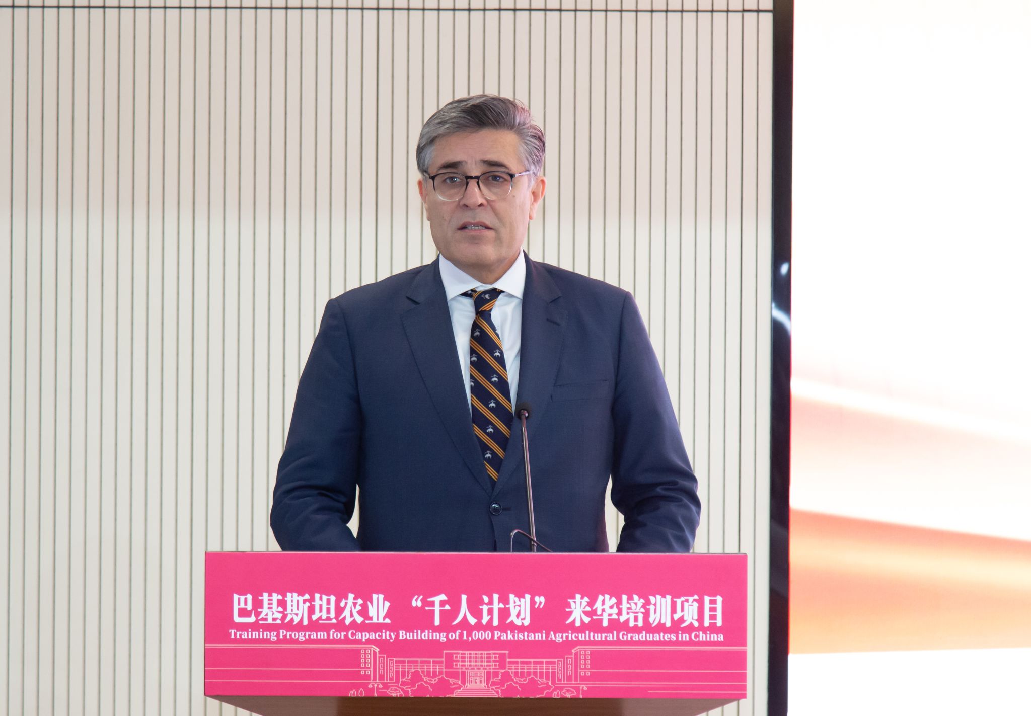 11月19日上午,巴基斯坦农业“千人计划”来华培训项目首批学员结业典礼在校隆重举行。校长严建兵,巴基斯坦驻华大使Khalil Hashmi(卡里尔·哈什米)等出席典礼。典礼由教育培训学院院长赵慧主持,244名巴基斯坦学员现场参加典礼。