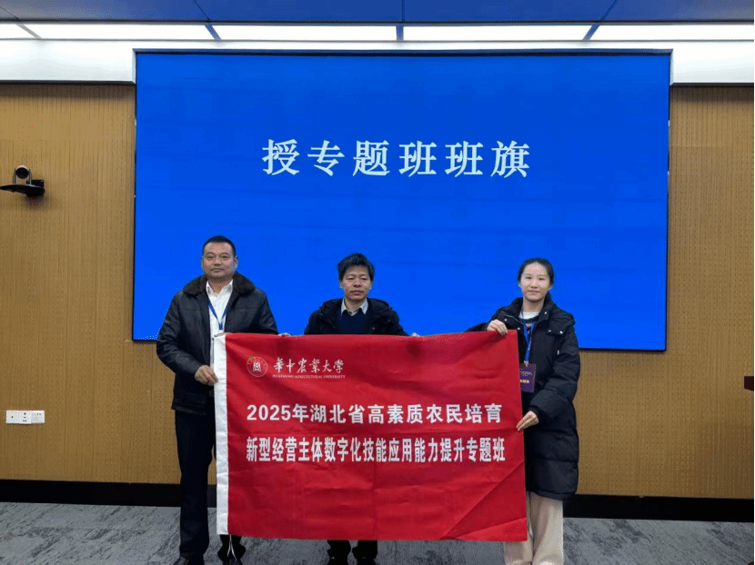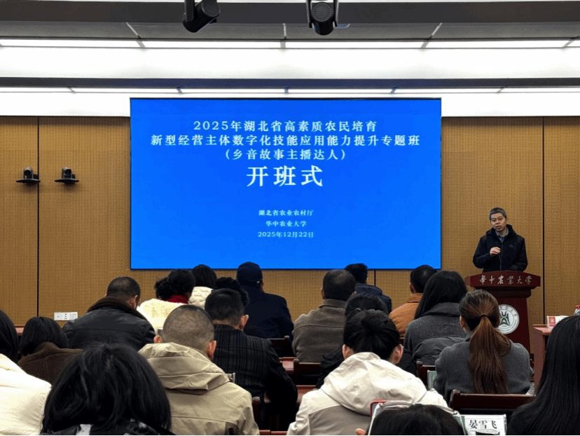 12月22日,2025年湖北省高素质农民培育新型经营主体数字化技能应用能力提升专题班(乡音故事主播达人)二期正式开班。湖北省农业农村厅农村社会事业促进处副处长王海军,华中农业大学教育培训学院院长、科学技术发展研究院副院长赵慧出席开班式。