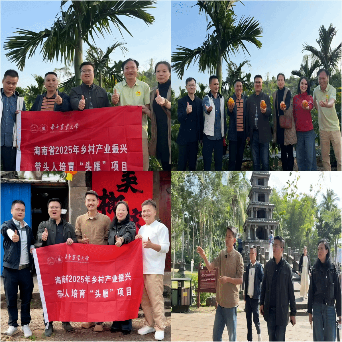 近日,华中农业大学头雁导师荣振环老师带队指导帮扶2025年海南头雁三产融合组学员,历时四天,足迹遍布琼海、万宁、琼中、东方等8地,以流量运营、美学打造、品牌命名为核心抓手,为各学员量身定制三产融合升级方案。