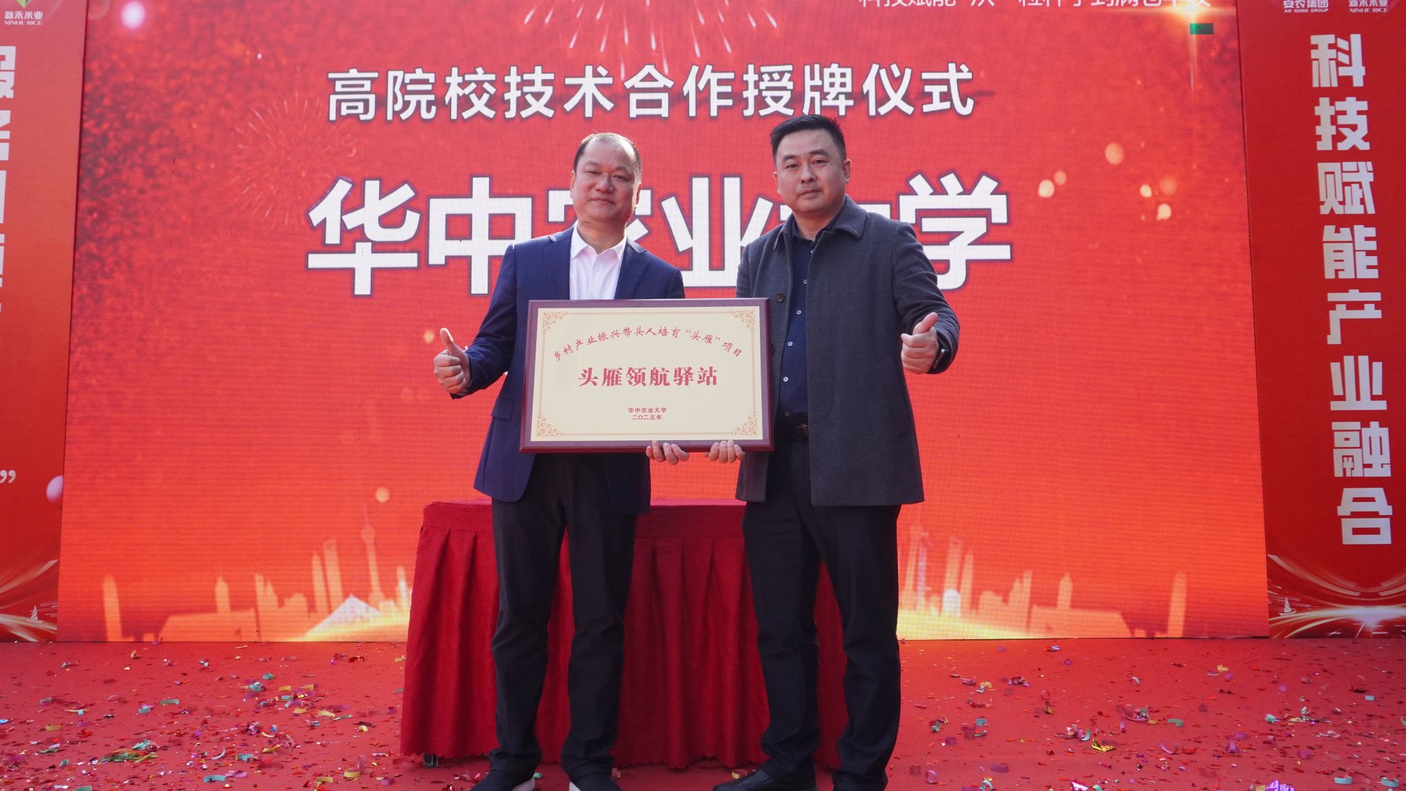 农事中心的建成活动现场,华中农大教育培训学院副院长兰之祥出席致辞并授牌,“头雁领航驿站”的落地,正式将校地合作推向制度化、常态化。兰之祥表示,学校将以驿站为抓手,把科研、人才优势转化为产业优势,而这一合作模式,本身就是“头雁”培育成效的有力印证。