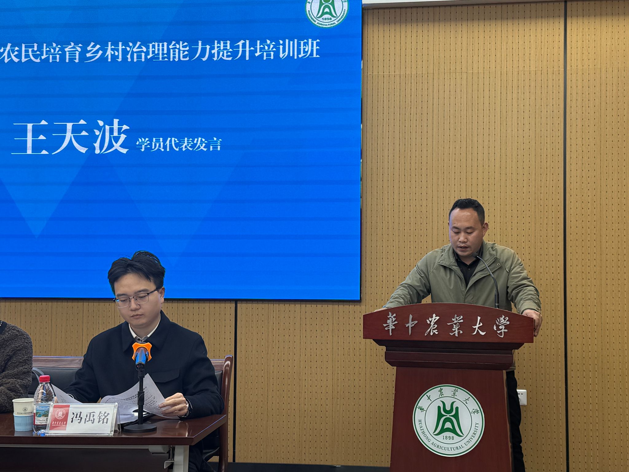 学员代表王天波发言,对房县农业农村局、中共房县县委组织部及华中农业大学给予的培训机会表达感谢,并代表全体学员作出三项承诺:珍惜机会潜心学习、联系实际学以致用、严格遵守纪律端正学风,以实干担当助力乡村振兴。