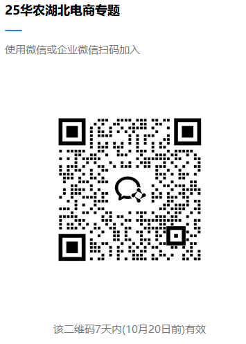 大家好!湖北省2025年乡村产业振兴带头人培育“头雁”项目(电商专题)即将开班,培训时间为2025年10月23日-11月12日。为保证信息共通,内容共享,如您确认参训请您先截屏下方二维码,再打开微信扫描二维码加入本次培训班级群,以便及时获得最新通知。
