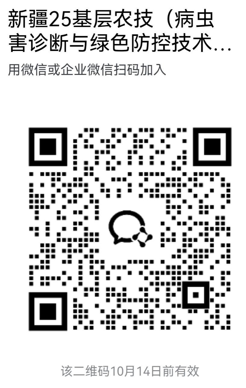 2025年新疆基层农技(病虫害诊断与绿色防控技术专题)培训工作已经启动,欢迎您到湖北武汉·华中农业大学参加培训。为保证信息共通,内容共享,请您截屏二维码,扫描二维码添加学员群,以便及时获得最新通知,感谢您的支持与配合。